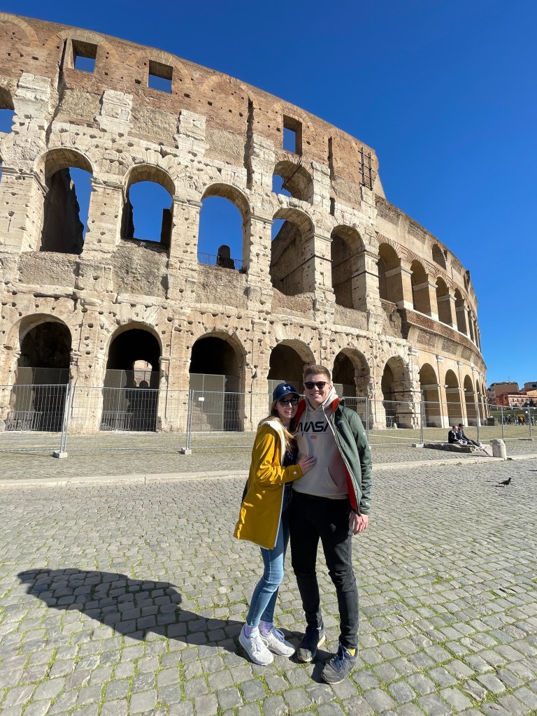 Následne sme sa presunuli autobusom naspäť do centra mesta, kde sme si online zakúpili zľavnené, študentské lístky do Kolosea, ktoré nám následne platili aj do komplexu Forum Romanum. Lístky boli znovu viazané na presný čas, čakanie sme si preto vyplnili fotografovaním a obedom 😅. V Koloseu sme mali prehliadku bez sprievodcu, Hanka si však pripravila niekoľko záujímavostí a spravila nám náhradný výklad.