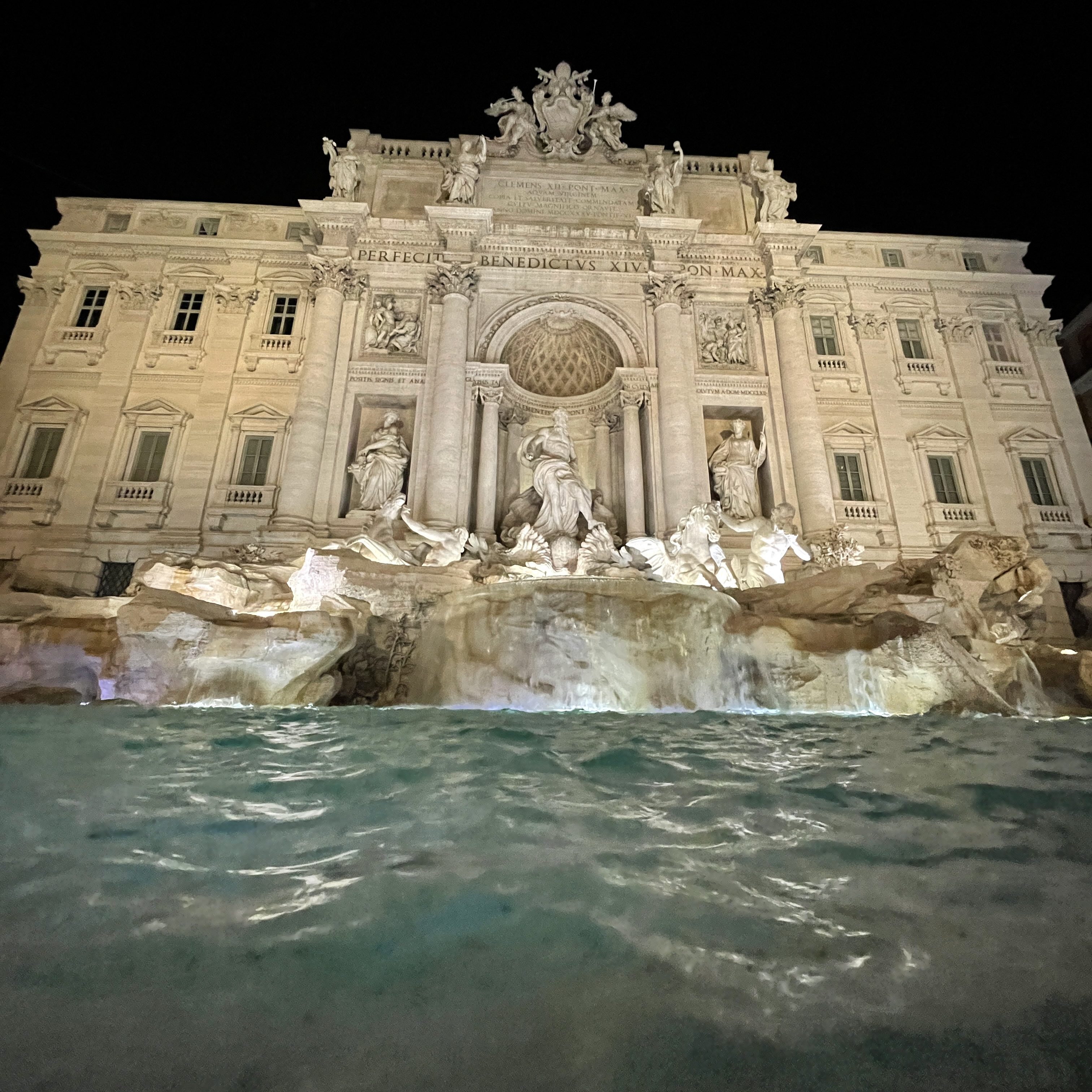 Po úspešnom získaní lístkov sme sa metrom vybrali naspäť na opačnú stranu rieky Tiber, kde sme plnými dúškami nasávali atmosféru večerného Ríma, počas toho ako sme sa prechádzali okolo známych pamiatok ako sú Španielske schody a Fontána di Trevi, ktorá bola takto večer veľmi pekne nasvietená.