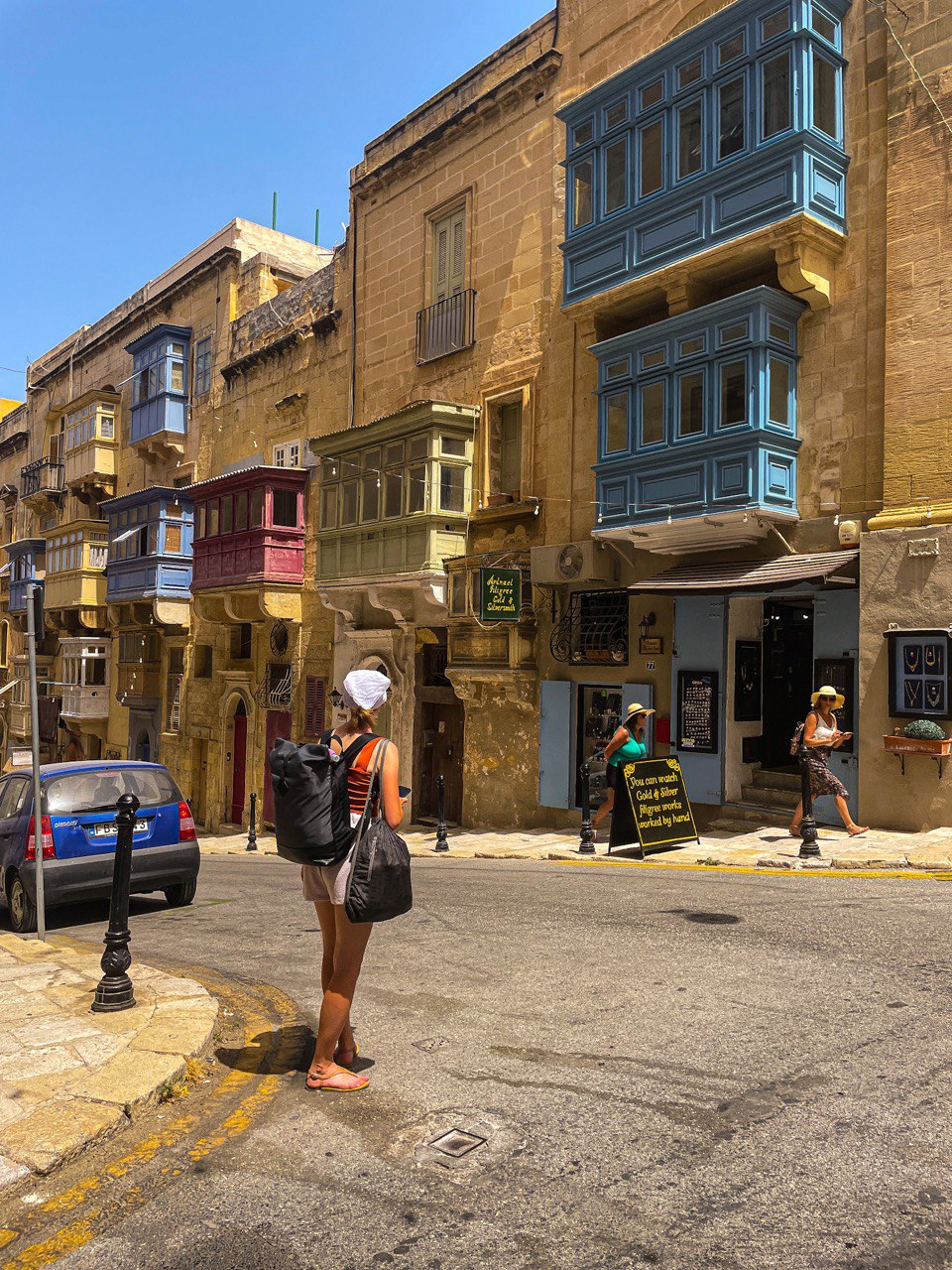 Tento náš výmysel mal pravdepodobne jedinú výhodu a to, že o 6:00 sme boli už všetci čulí a spať sa nám už nedalo. Rozhodli sme sa teda začať o hodinu skôr ako sme mali v pláne. Autobus nám mal ísť podľa oficiálnej stránky každých 15 minút, rovnako hovoril aj Google. Po 40 minútach čakania konečne prišiel. Odviezli sme sa k Tritonovej fontáne kde sme spravili rýchlu fotku a vošli sme do Valletty kde sme sa išli hľadať kávu.