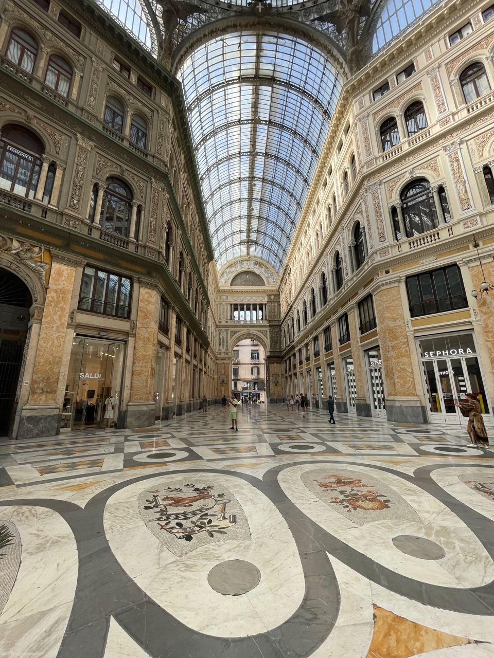 Po tom ako sme sa ubytovali a trochu si oddýchli, sme sa vybrali pozrieť stanice metra, ktoré patria k najkrajším na svete. A môžeme potvrdiť, že tieto stanice nás veľmi očarili. Keďže ich bolo viac kúpili sme si celodenný lístok na metro, ktorý nás vyšiel iba 4,50€, naviac sme zistili, že to platí nielen na metro ale aj na autobusy či zubačky. Našu cestu metrom sme začali na stanici Garibaldi a postupne sme sa presunuli cez stanice Duomo, Toledo, Dante až na Vanvitelli, ktorá bola na kopci. Odtiaľ sme sa zubačkou zviezli dolu a pokračovali v prechádzke. Cestou na námestie Piazza del Plebiscito sme sa zastavili v Galleria Umberto I.