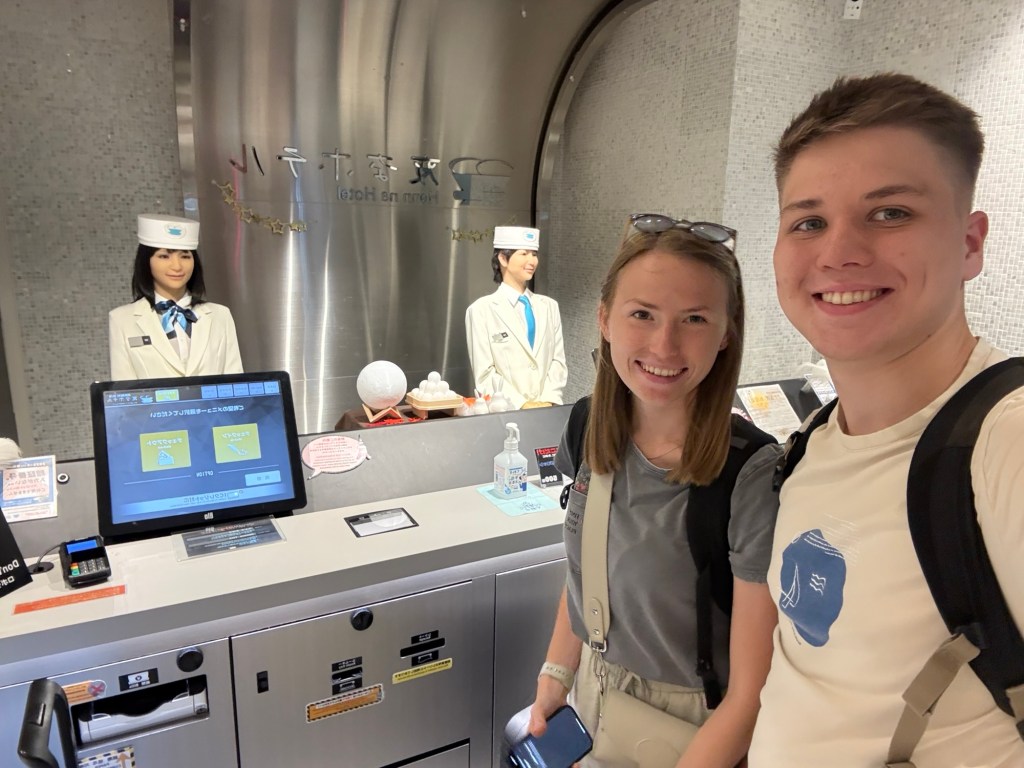 Leteli sme so spoločnosťou Tiger Air, čo je niečo ako ázijský Ryanair. Všetko prebehlo hladko a po takmer trojapolhodinovom lete sme pristáli na letisku Tokyo Narita. Tokyo má dve letiská – Haneda a Narita. Narita je síce ďalej od centra, ale ak človek nastúpi na správny vlak, dostane sa pohodlne priamo do mesta. Nám to vyšlo na prvýkrát, a tak sme po všetkých kontrolách a vyzdvihnutí batožiny (spolu nám to netrvalo ani pol hodinu) sadli do vlaku, ktorý nás odviezol až k hotelu.
