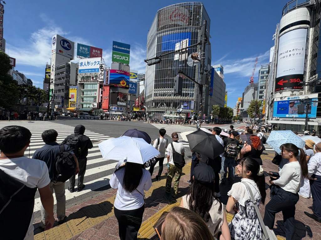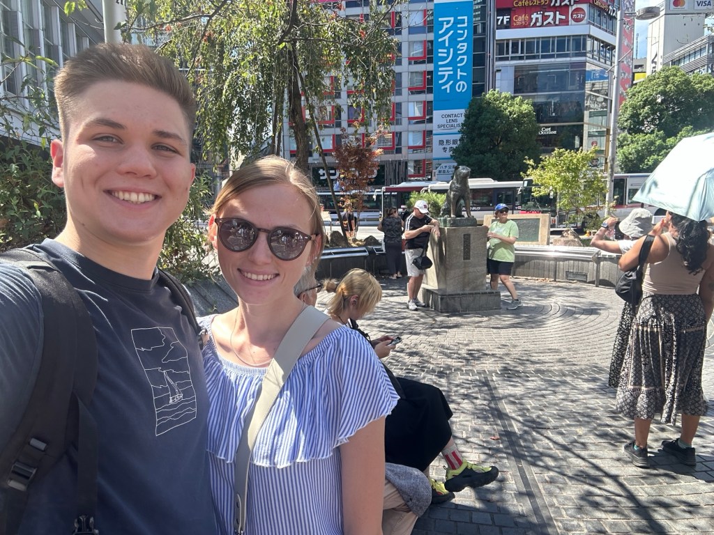 Deň sme začali raňajkami vo Family Mart – jednoduchý sendvič s vajíčkom, ale naozaj veľmi chutný. Potom sme sa metrom presunuli do štvrte Shibuya, kde sa nachádza najslávnejší a najrušnejší prechod pre chodcov na svete. Na celé dianie je pekný výhľad zo Starbucks café, a tak sme si dali kávu a chvíľu pozorovali ten nekonečný prúd ľudí.