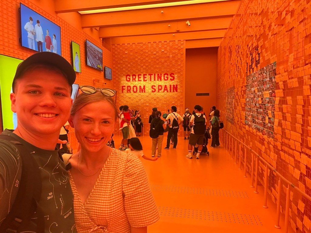 Následne sme sa presunuli k ďalšej obhliadke pavilónu, ktorý sme mali rezervovaný – Kórea. Ten bol fakt super, aj interaktivny aj zaujímavý a prevedenie tiež. Hneď vedľa neho sa nachádzal Španielsky pavilón, do ktorého sa nám akurát hneď podarilo dostať a bol tiež krásny. Ako zvonka tak aj vnútri. A za nás získal 10/10.