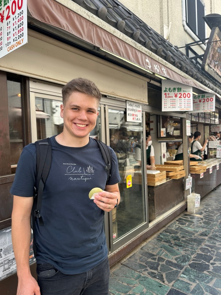 Pred odchodom z Nary sme sa zastavili na obede v blízkosti stanice a dali sme si veľmi dobrý Ramen. Nara je známa jedným obchodníkom kde ručne vyrábajú mochi, a tak sme ani to nemohli vynechať. Síce sme už výrobu nestihli, ale dali sme aspoň malú ochutnávku.