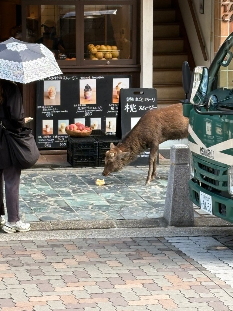 Keďže včera bol dlhý deň, začali sme kúsok neskôr. Tento deň bol v pláne vylet do Nary. Nastúpili sme na metro a o pár zastávok sme prestúpili na vlak, ktorý nás doviezol až do centra Nary. Keďže toto mesto je známe hlavne jeleňmi, ktoré sa potulujú voľne po meste, netrvalo dlho a našli sme ich.